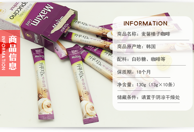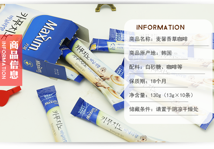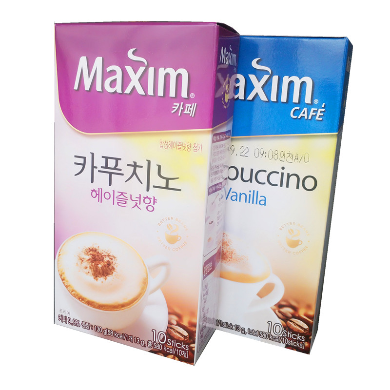 Macqua Cabuchino Coffee Korea Imports Maxim Vanilla Hazelnut Taste Three-in-one Foam Coffee 10 Bar