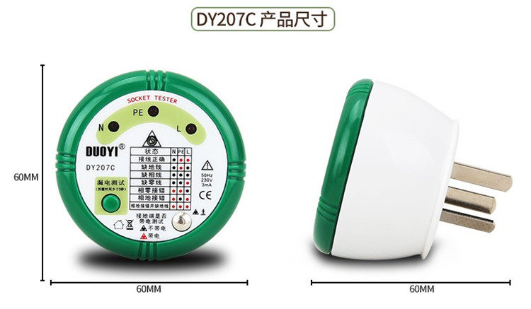 More socket safety tester DY207C buzzer electroscope 10A leakage switch zero wire ground wire fire wire