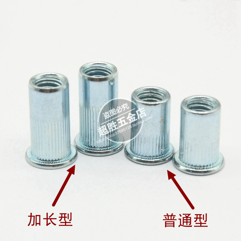 Glengthened pull riveting nut pull rivet thick plate 5mm pull cap M3M4M5M6M8 flat head column grain white zinc color zinc