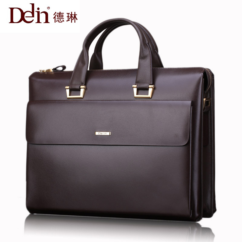 Delin brand business men's bag handbag large briefcase Men's shoulder bag cross section leather business bag large capacity