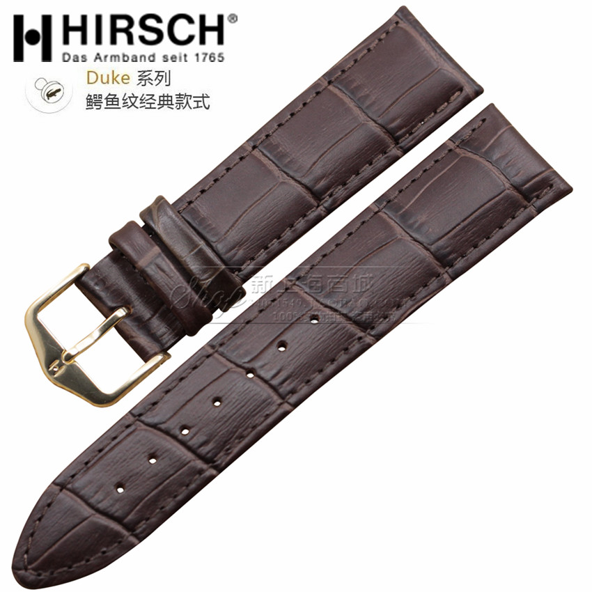 HIRSCH strap large crocodile pattern black brown leather strap 19 20 22mm