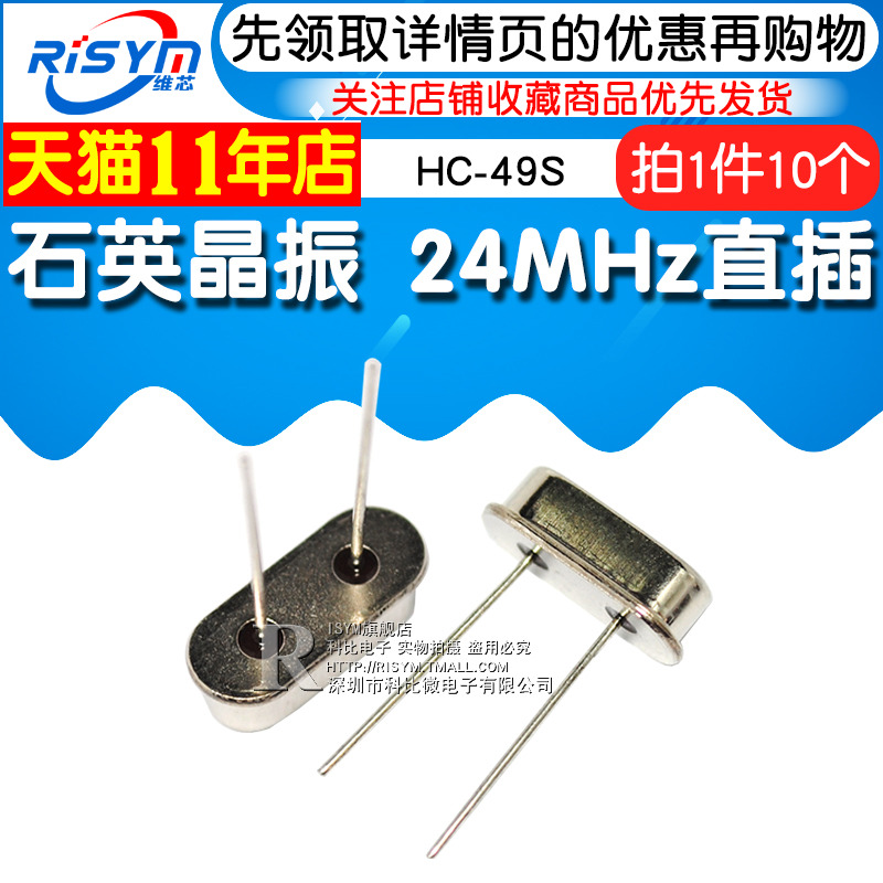 Risym 24MHz in-line two-pin HC-49S passive crystal 24M bell crystal Quartz crystal crystal 10