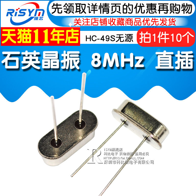 Risym 8MHz in-line two-pin HC-49S passive crystal 8M bell crystal Quartz crystal crystal 10