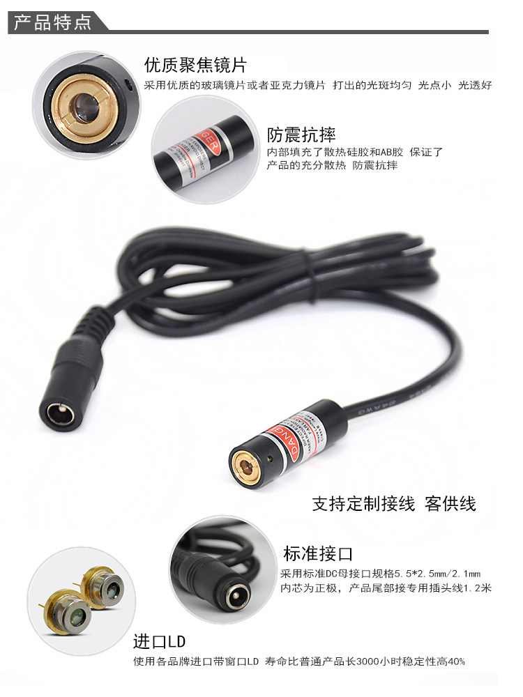 Marking machine Red dot laser head 650nm low power adjustable focus laser emitter Dot laser module