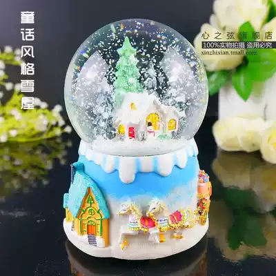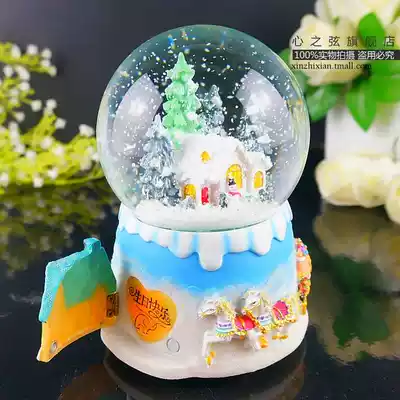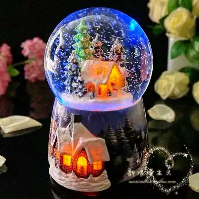 Snow scenery floating snowflakes crystal ball music box rotating music box Children's male and female friends send female birthday creative gift