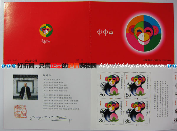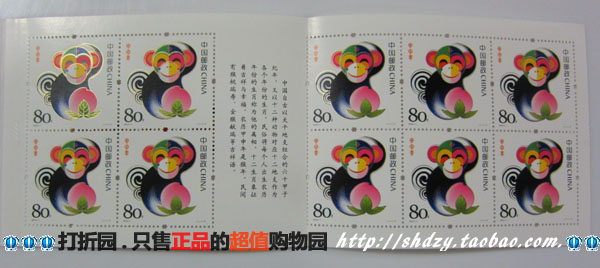 2004 "Jia Shen Nian" Small Book Stamp Year of the Monkey Small Book Stamp Year of the Monkey Promissory Note (SB) 26 Si Kuan Real Shop