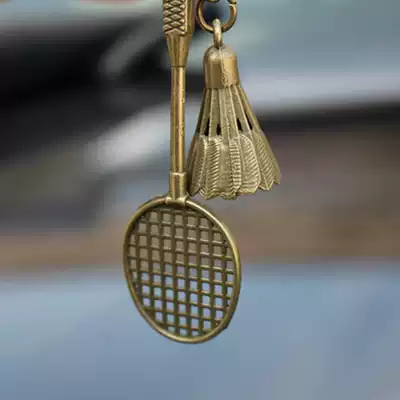Mini simulation badminton metal keychain Mini badminton badminton racket metal hanging jewelry