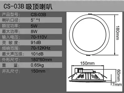 All-metal 5-inch ceiling speaker Background music broadcast audio ceiling speaker Fire shop suspended ceiling speaker