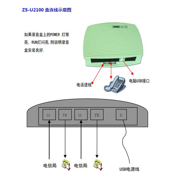 Zibo ZS-U2102 dual USB telephone recording box USB interface 2-way recording box original