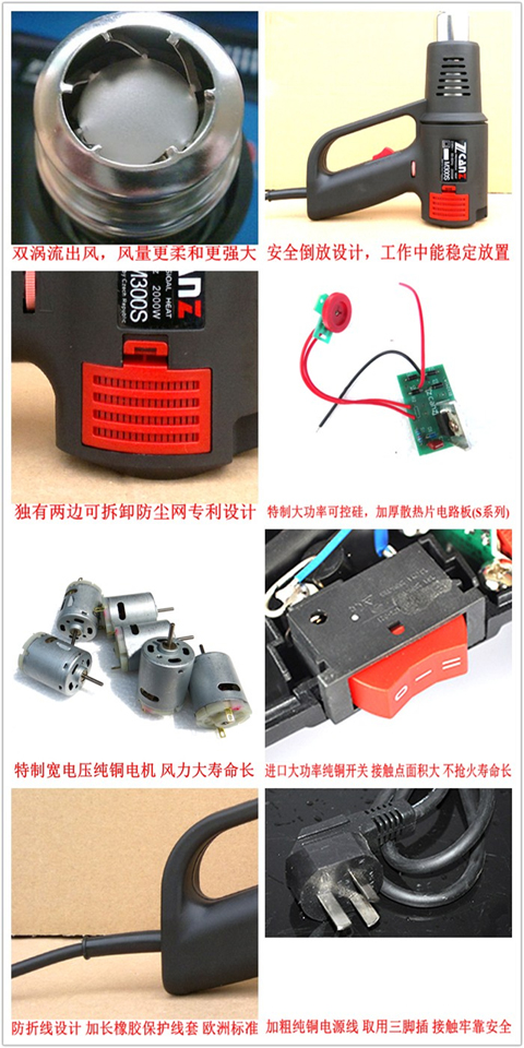 Zhuoneng M800S stepless temperature adjustment industrial hot air gun super performance hot air gun electric baking gun imported Motor
