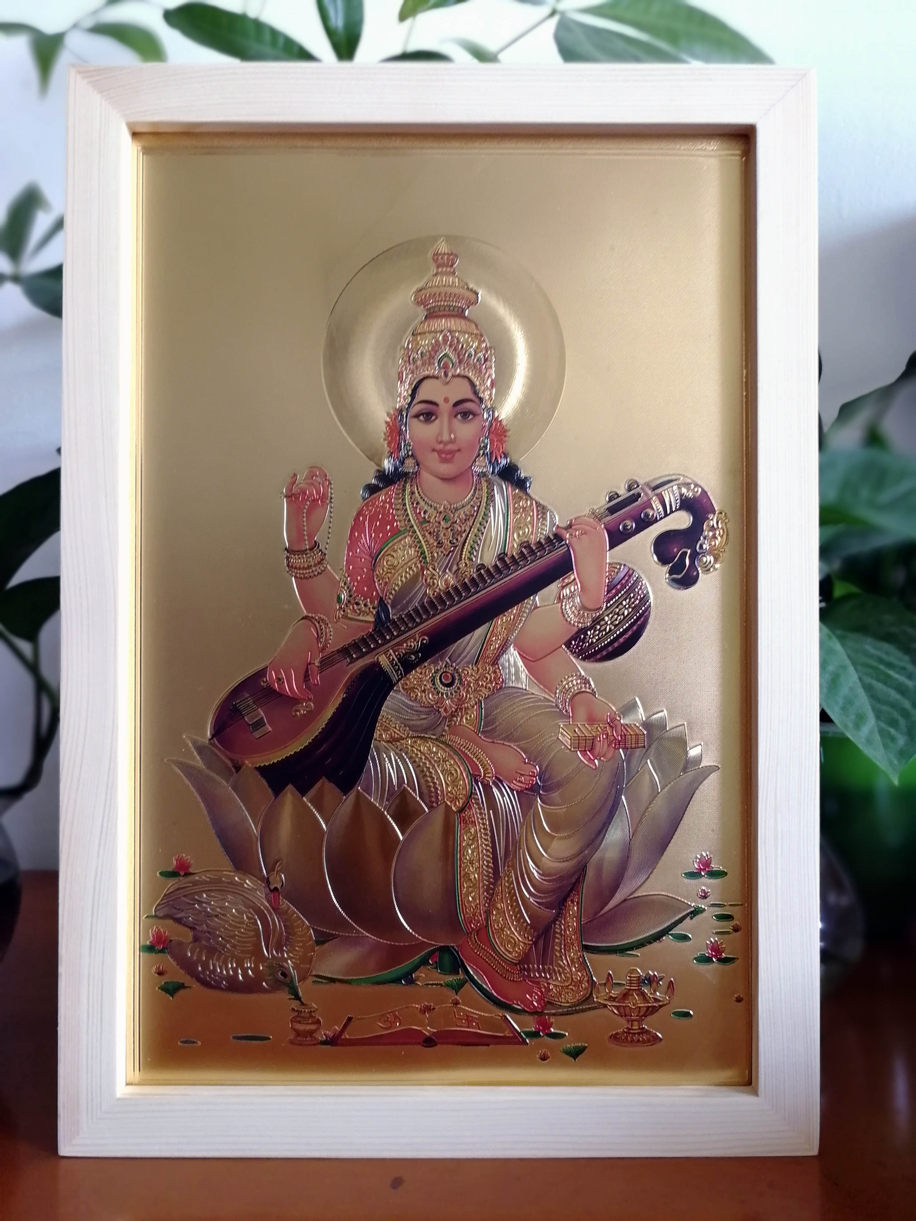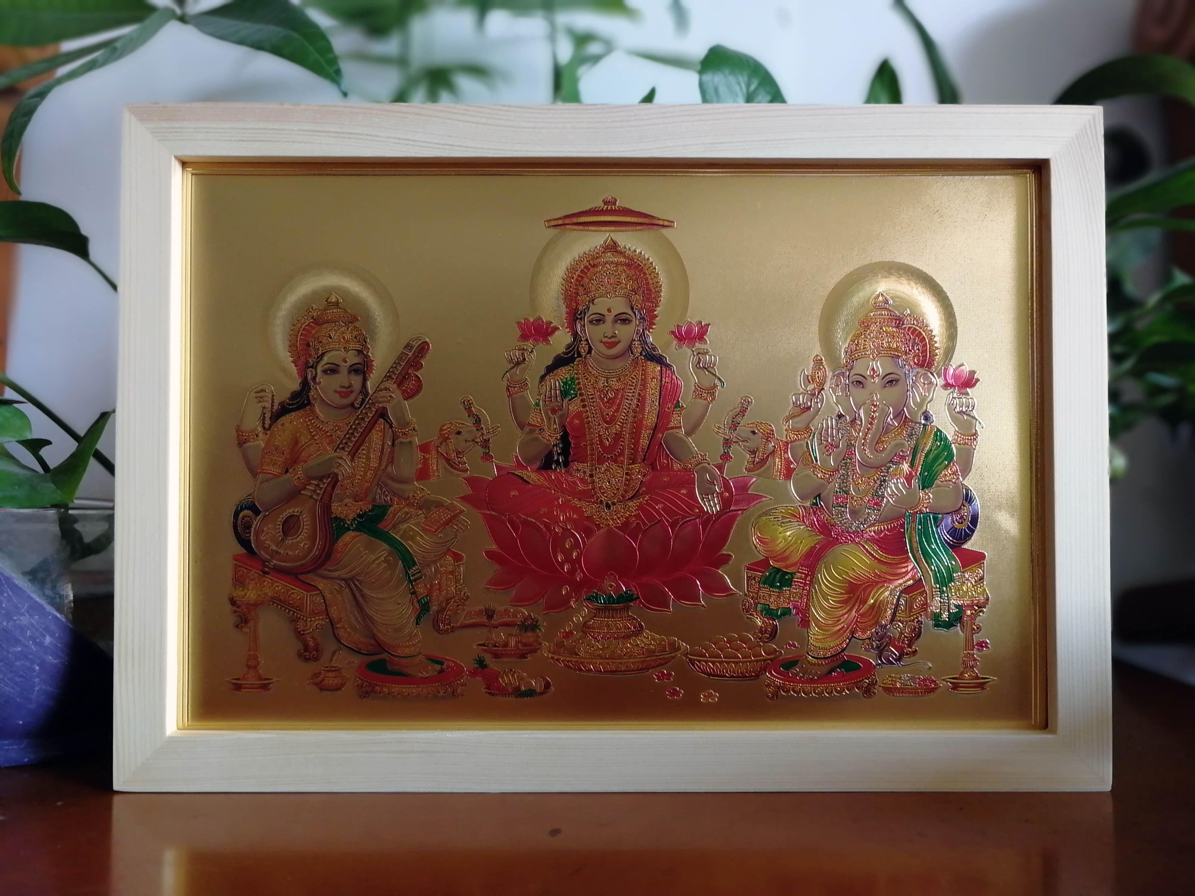 Indian gods and Buddhas Auspicious Tian Female Miaoyin Tian Female Wet Po Indian Three gods Goddess of Luck Gold leaf painting 30*20cm