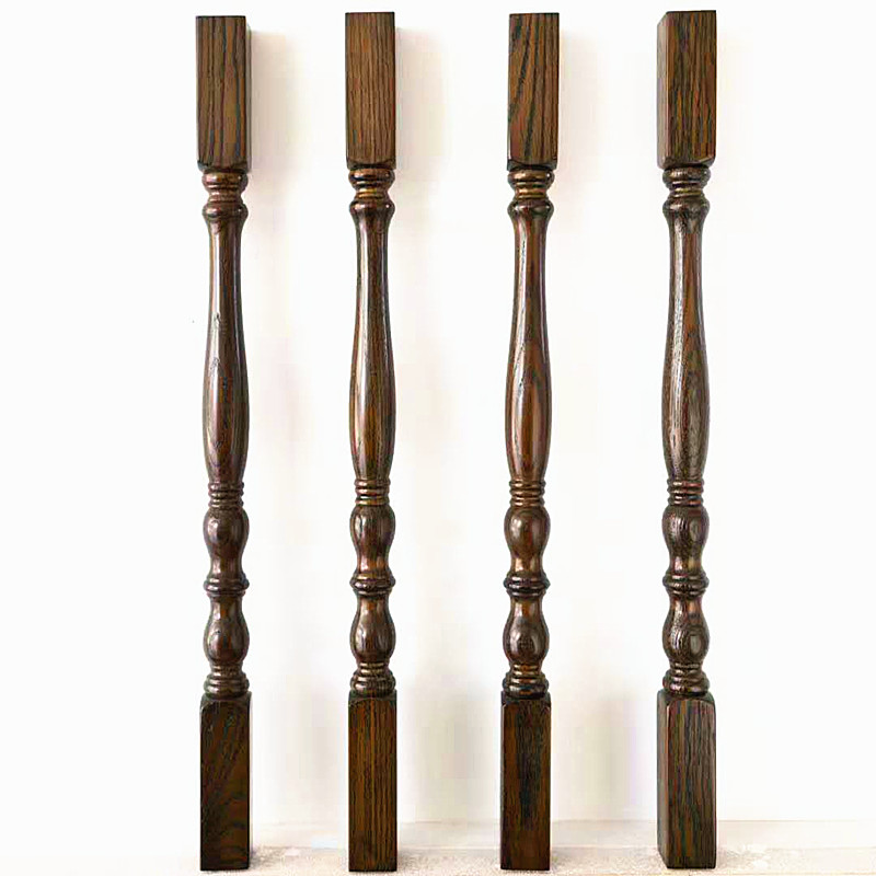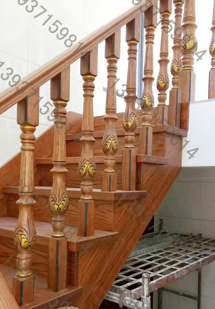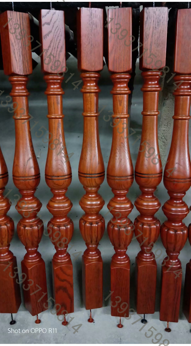 Custom stairs Red oak stairs handrail railing Wooden column Solid wood handrail European style guardrail Balcony bay window guardrail