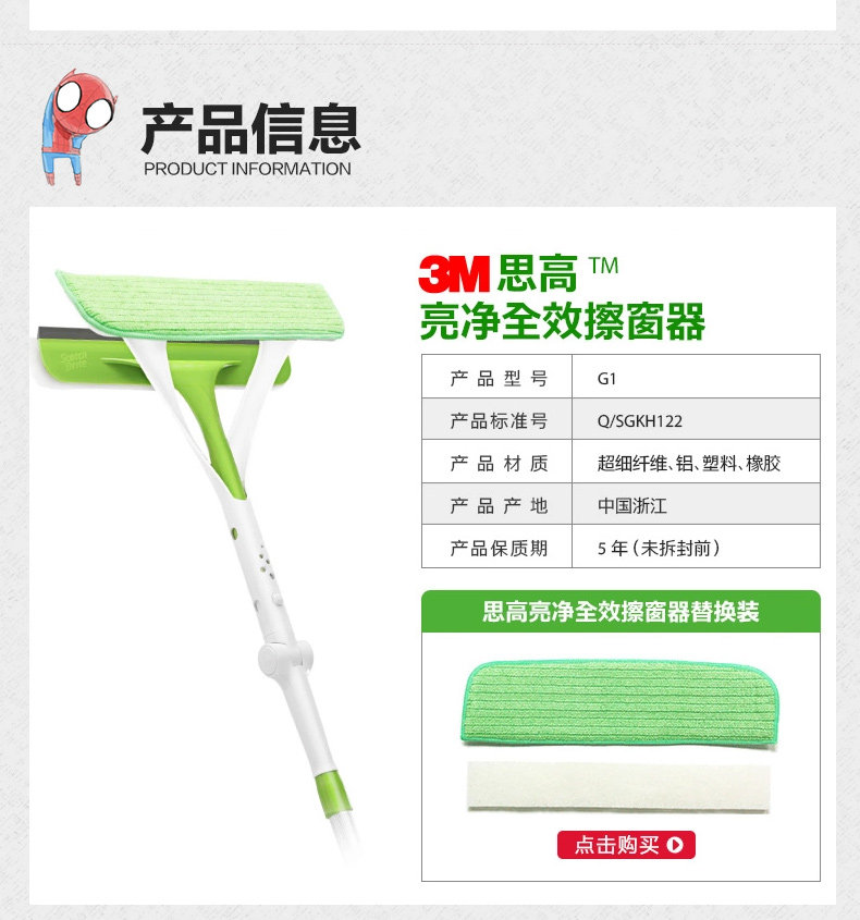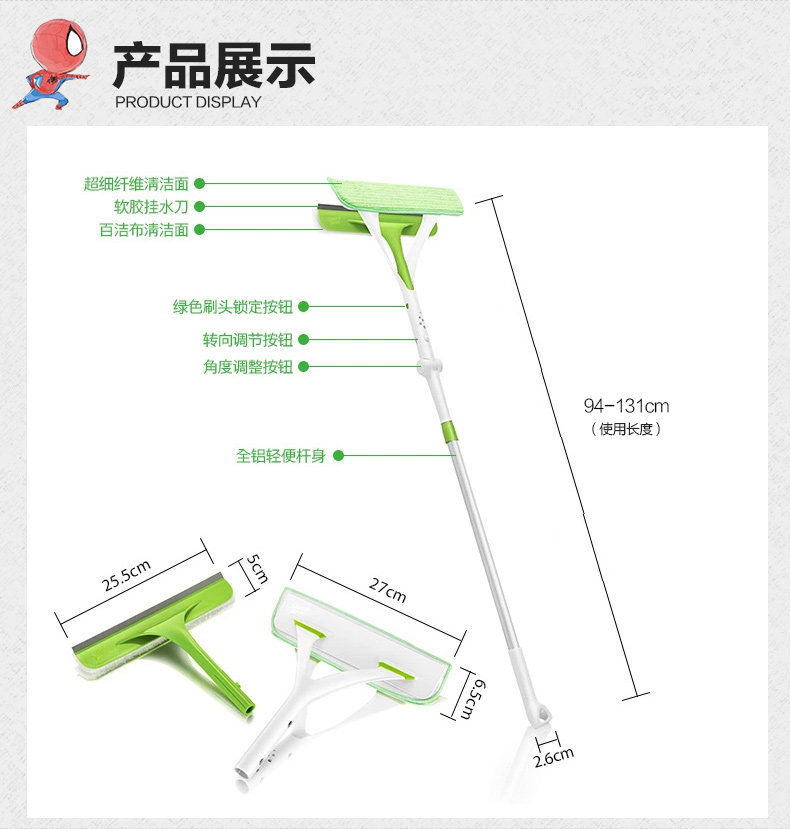 3M Sigao clean bright double-sided window wiper telescopic aluminum rod wipe high-rise window glass scraper home cleaning tool
