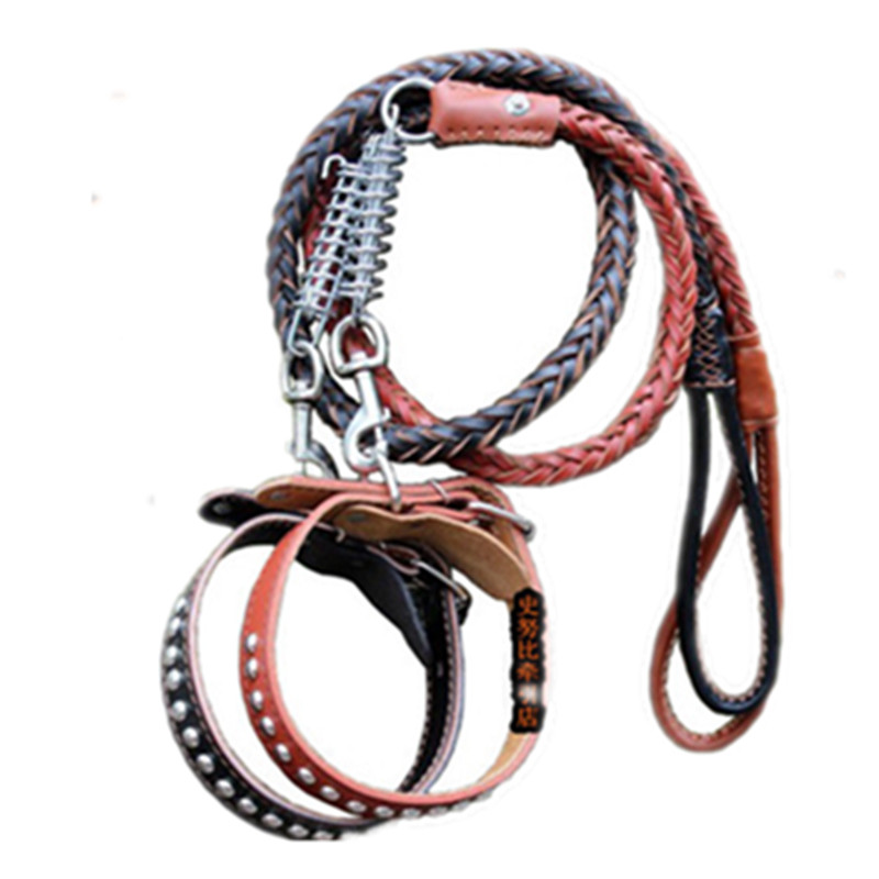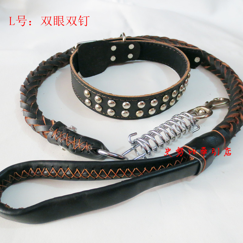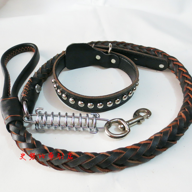 Pet cowhide dog chain leather dog rope leash dog collar large and medium Alaskan golden retriever suit
