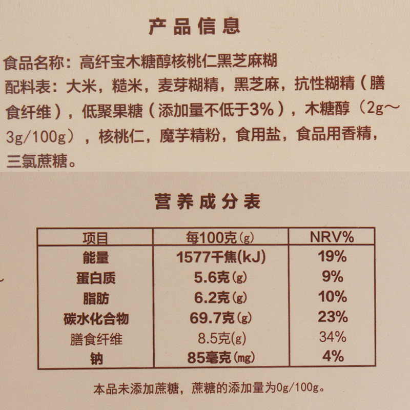 High fiber treasure xylitol walnut kernel black sesame meal replacement staple food saccharin-free food night urine snack middle-aged and elderly