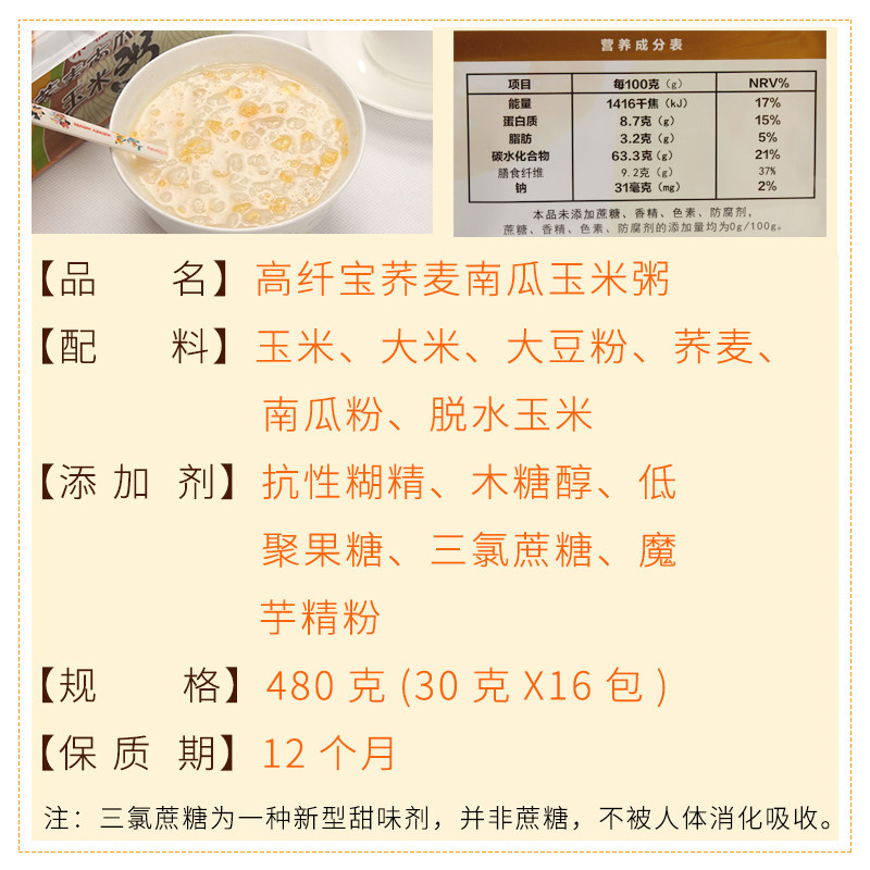 High-fiber treasure buckwheat pumpkin polenta unsucrose-free saccharin-free food sugar man snack xylitol instead of breakfast porridge