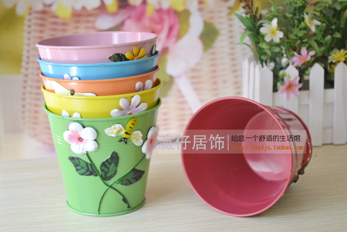The pastoral home decorates bright iron - leather flower barrels iron - leather barrels - flower - flower pots