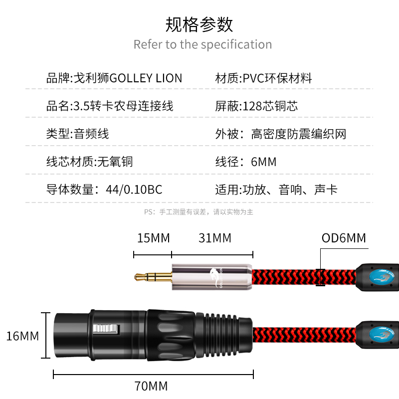 Golly Lion 3 5 to Car Mother Audio Capacitor Microphone Microphone Mixer XLR Kannon Line