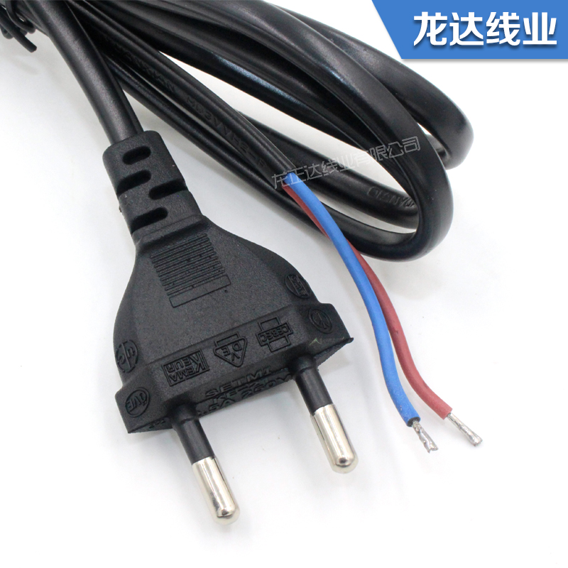 1 5 meters European gauge two round single head power cord two plugs bare wire tail tin 2X075MM thick core Longda factory direct sales