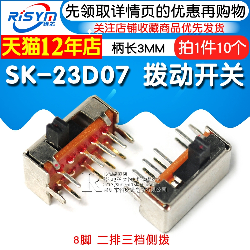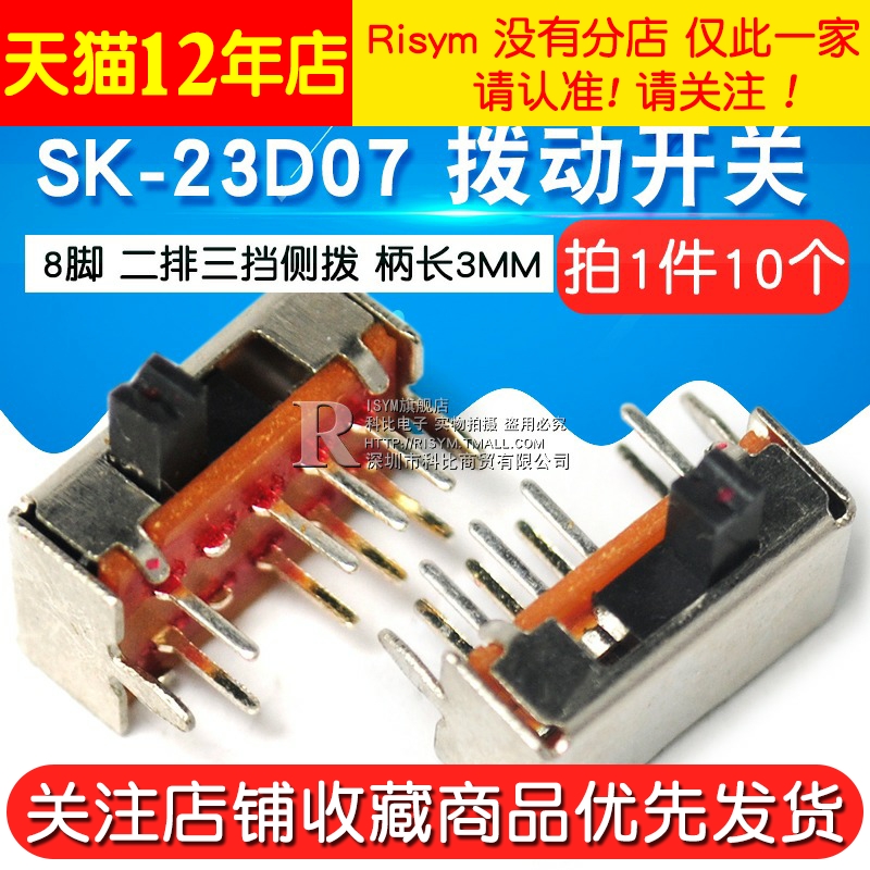 Risym toggle switch SK-23D07 horizontal 8 feet second row third gear 2P3T side dial sliding handle 3MM 10 pieces
