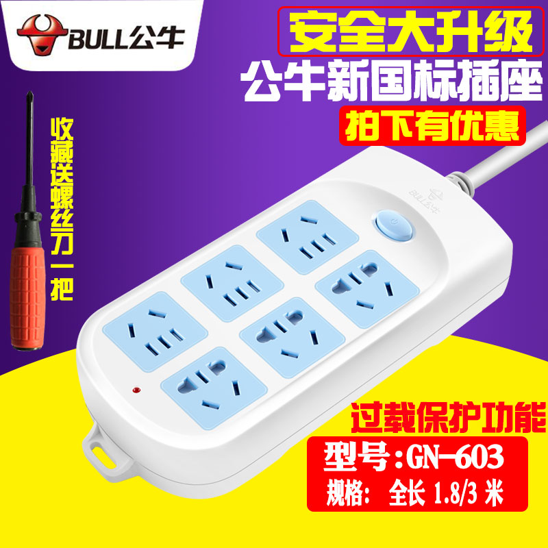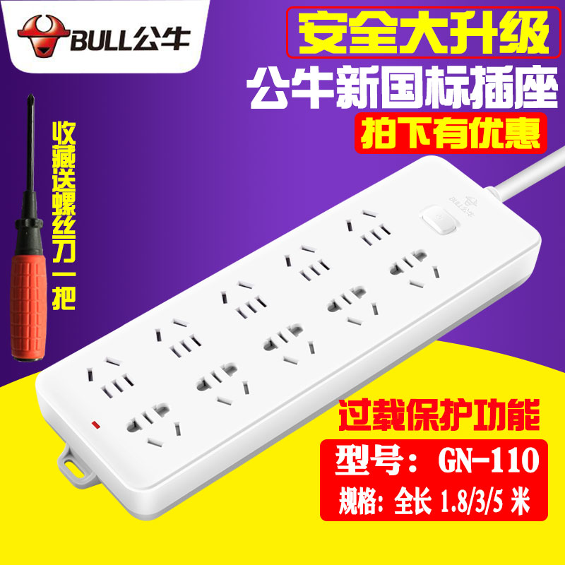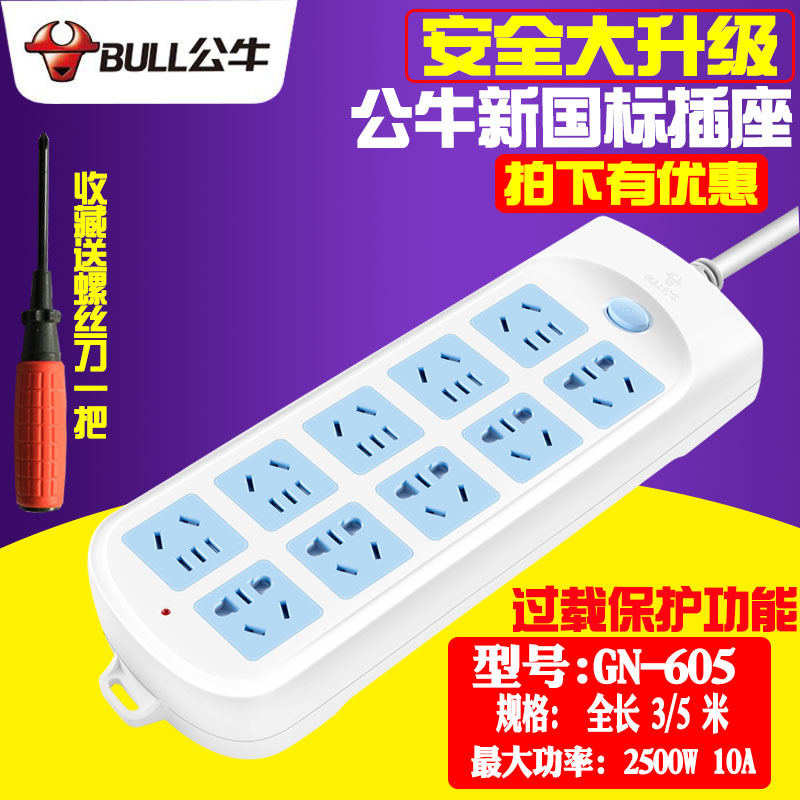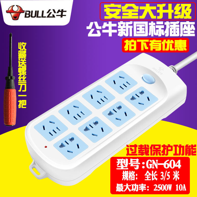 Bull socket power wiring board plug-in extension cord plug-in board with cable overload protection 1 8 3 5 10 meters