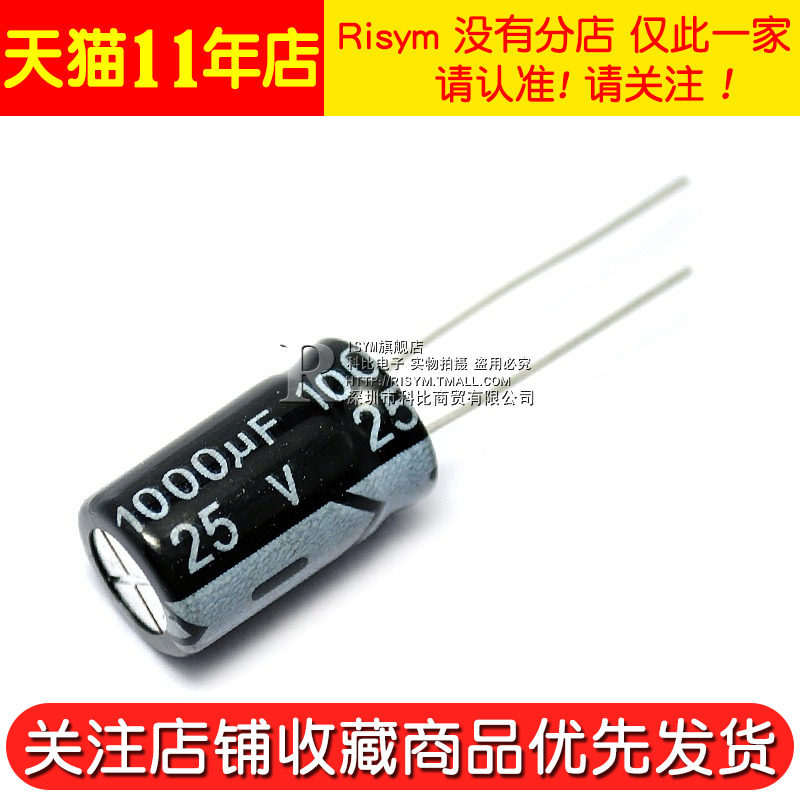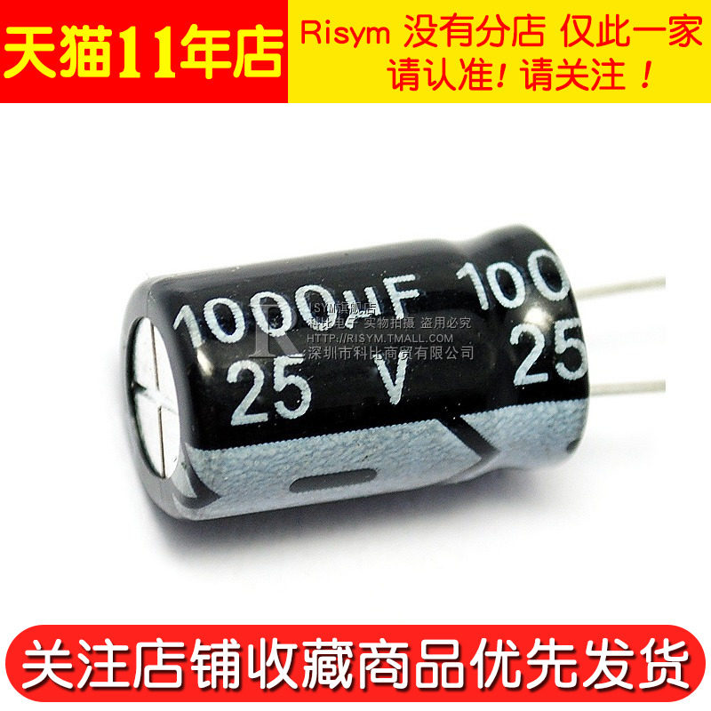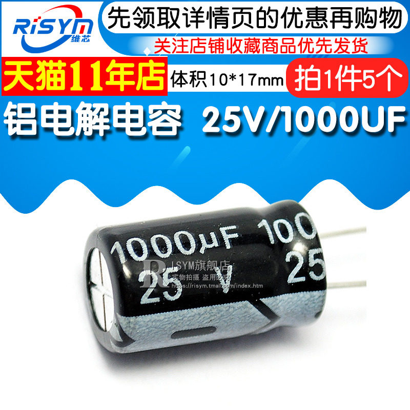 Risym high quality electrolytic capacitor 25V 1000UF 25V 1000UF Volume 10*17(5pcs)