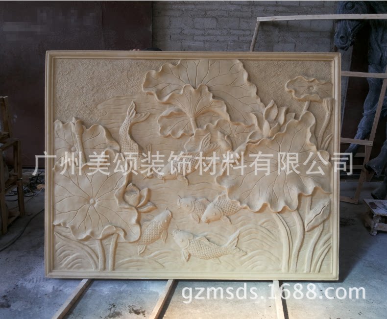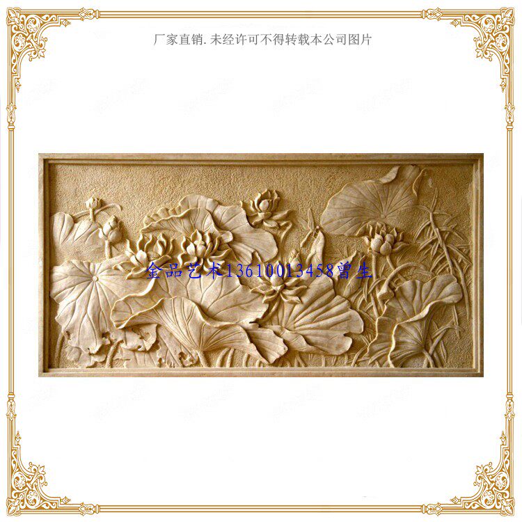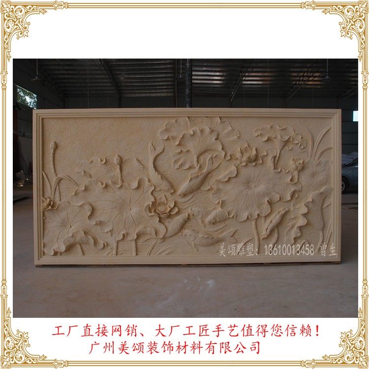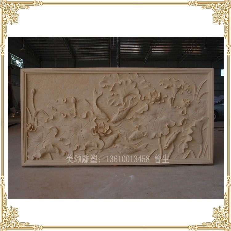 Custom sandstone relief background wall TV glass fiber imitation bronze embossed mural figure animal scenery sculpture lotus flower