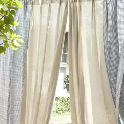 (3 meters) Plaid mosaic curtains return to nature, simple cotton and linen health and environmental protection can be customized