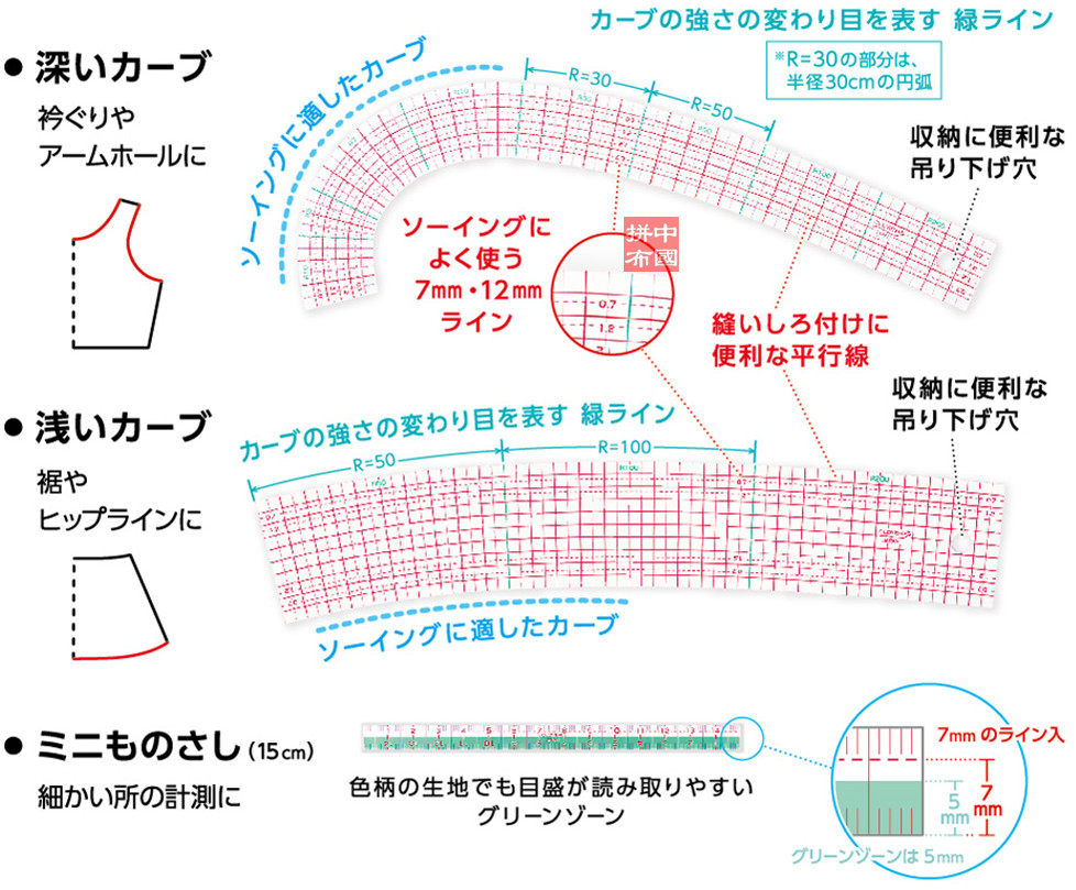 (curve ruler such as armhole neckline) three-piece set