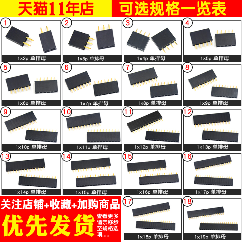Row female single row female single row female seat row pin socket 1*2P 3 4 5 6-40P 2 54mm(10 20