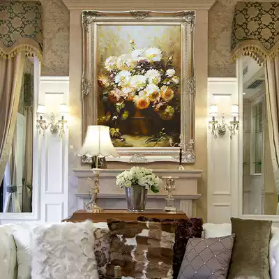 European-style hand-painted oil painting living room hanging painting Flower corridor peony dining room mural villa entrance decoration painting vertical customization