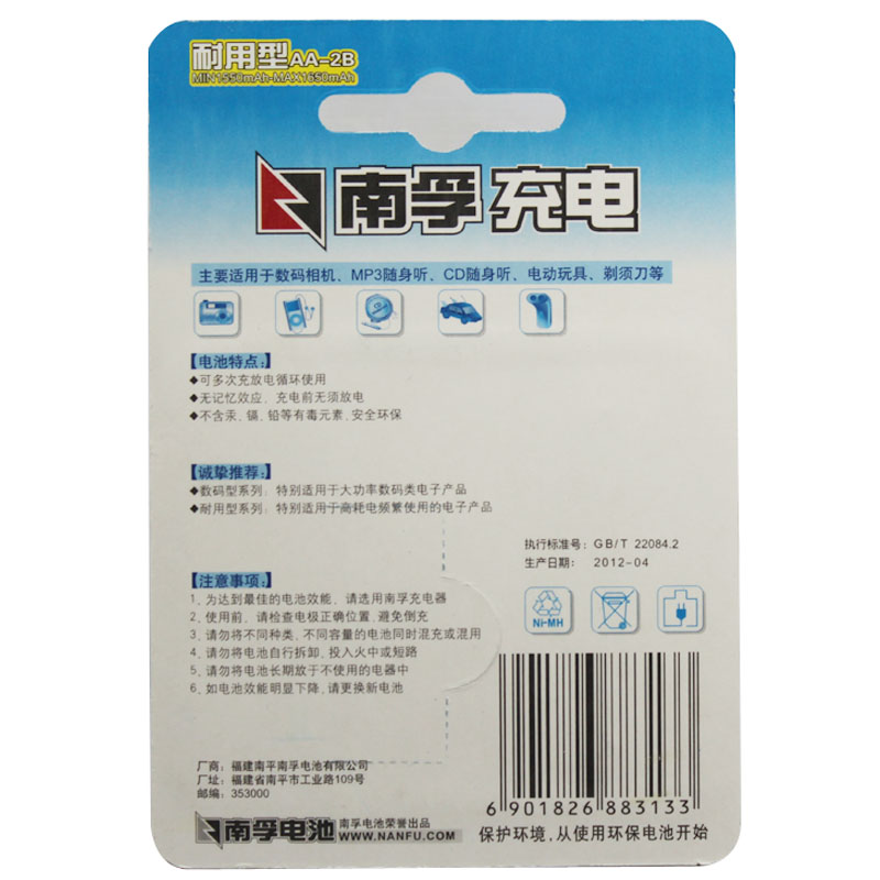 South Fu 5 Rechargeable Battery Durable Type 1 2V Nickel Hydrogen Cycle AA Home Toy Slide Mouse Rechargeable Battery