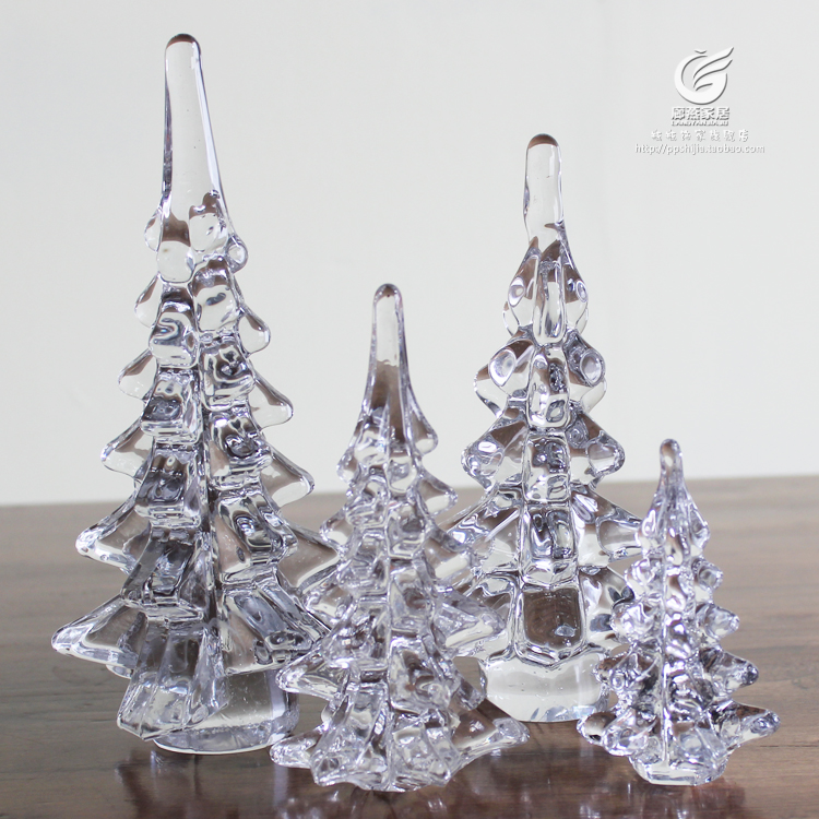 Crystal Glass Tree Swing Piece Christmas Tree Transparent Glass Decoration Tree Pine Tower Home Furnishing Eu Style Gift Plant Trees