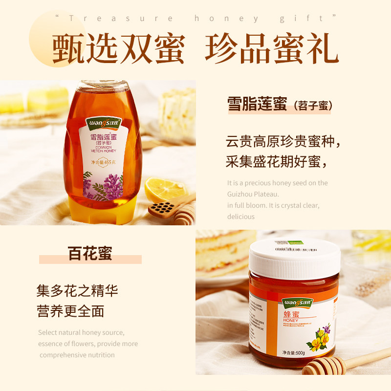 Wang's Honey Yiyang Tiannian Gift Box Hundred Flowers Honey 500g Snow Lotus 465g Holiday Gift Box