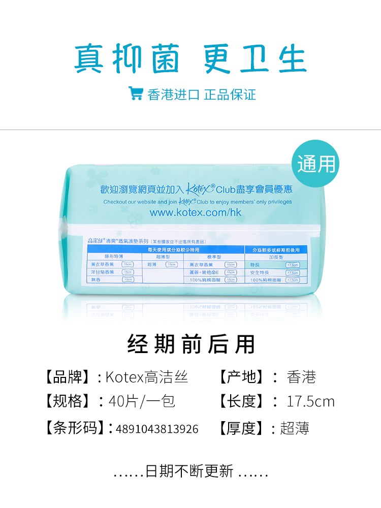 Hong Kong Imports depend on the sanitary pads Female pure cotton strips Bacteriostatic Clear and breathable lengthened 40 tablets 175mm