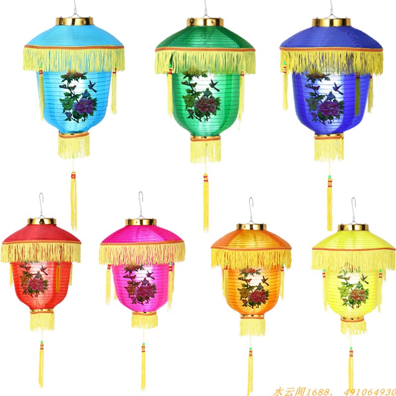 Colored Palace Lantern Steel Wire Lantern Lantern Lantern Mid-Autumn Festival Satin Cloth Paper Red Lantern Cloth Lantern Flower Lantern 20 Inches