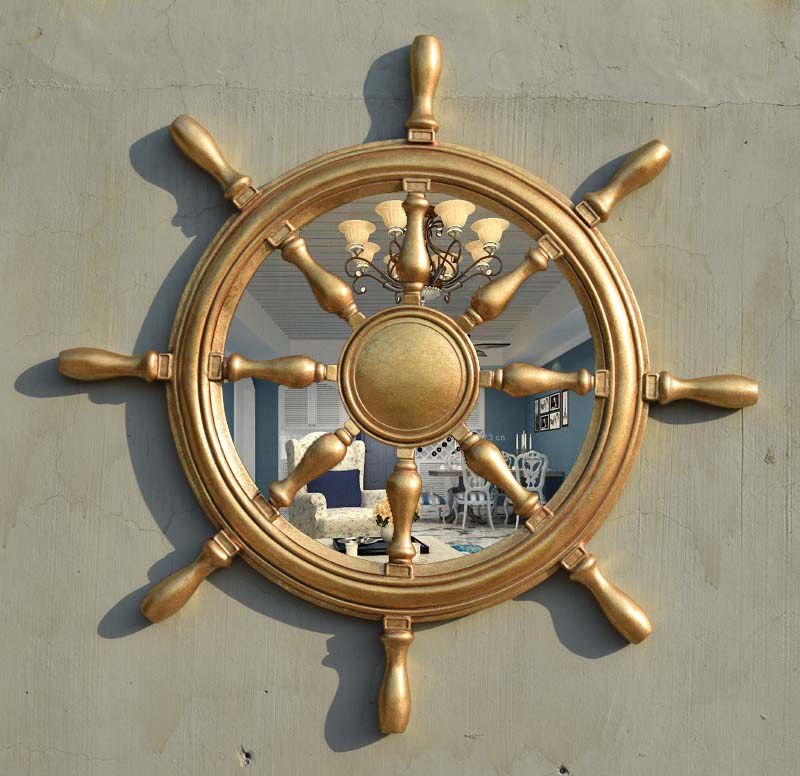 Direct Sale European-style Mediterranean style nautical rudder Hand wheel Decorative Mirror Hyun Guan Mirror Clubhouse KTV Bar Bathroom Mirror-Taobao
