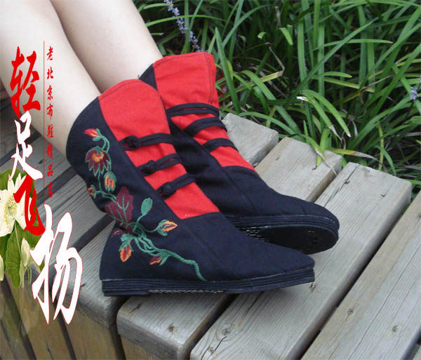 Short tube spring and autumn new embroidered boots Melaleuca bottom women's boots single boots inner height-increasing short boots women's shoes ethnic style Hanfu shoes