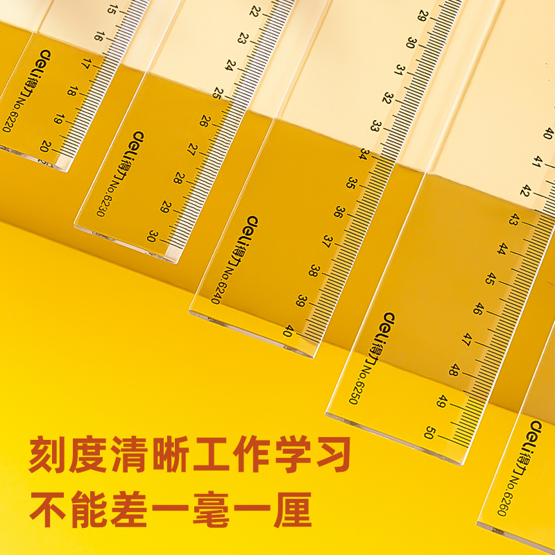 Deli Stationery 6220 Plastic Ruler 20cm 30cm 40cm 50cm 60cm Multi-Specification Ruler Student Office Drawing Drawing Measuring Tool