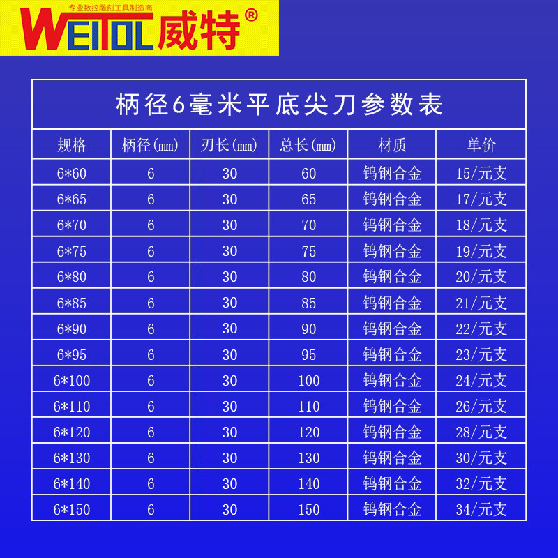 Witt lengthened 6mm flat bottom sharp knife engraving knife CNC computer engraving machine tool