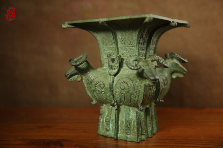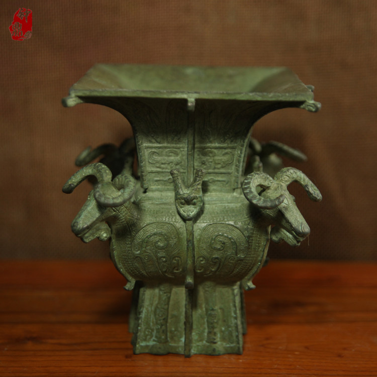 Four sheep square statue) antique bronze ware) cultural gifts) craft gifts decoration) home decoration) zhong ding bronze ware