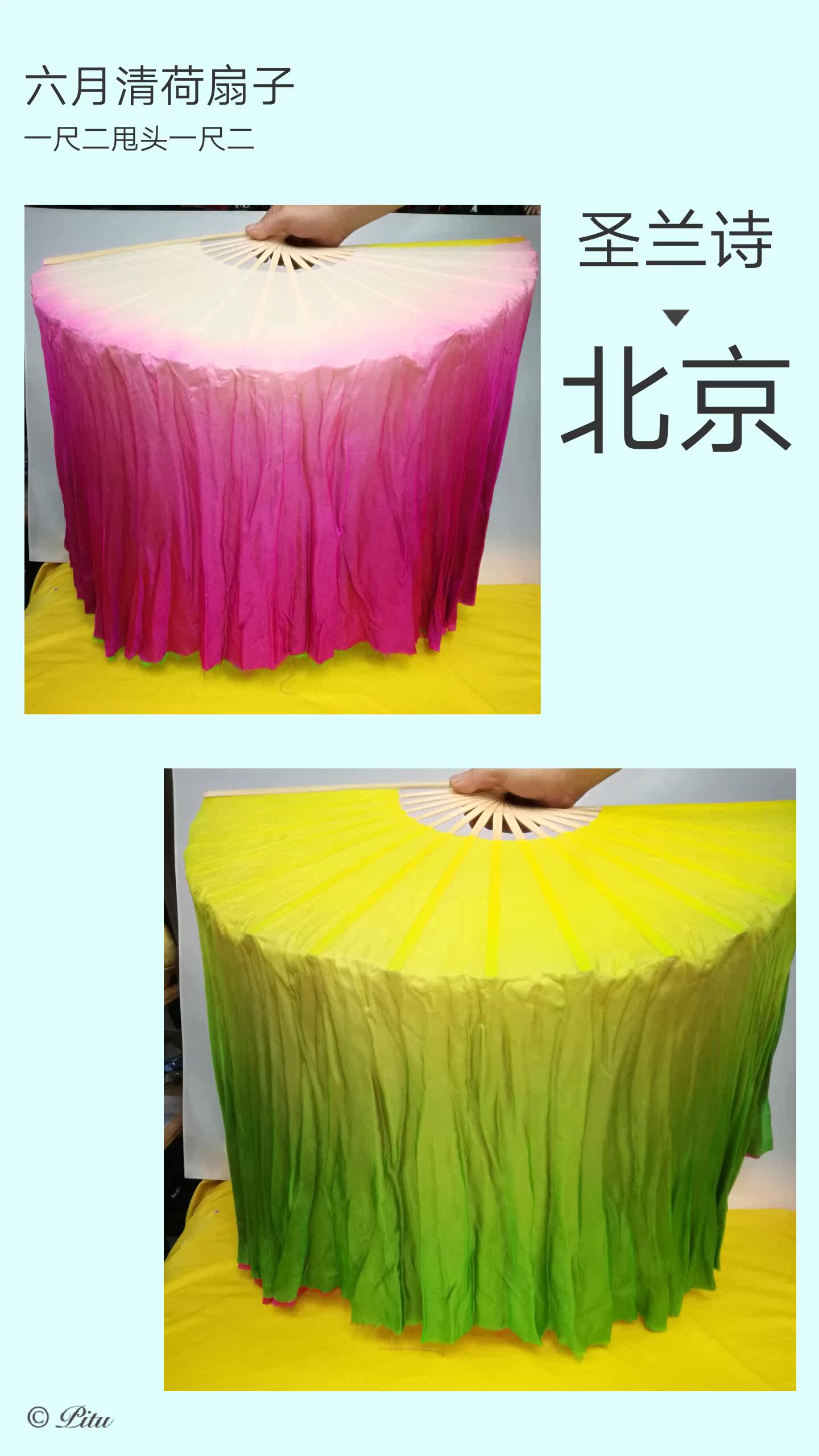 Sheng Lanshi silk June Qing lotus fan stage props fan multi-color gradient bamboo bone square dance fan 2