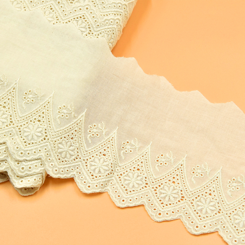 Hot Sell Diy Hand Accessories Hollowed-out Cotton Fabric Lace Flower Window Curtain Sofa Bed set accessories Pure Cotton Embroidered Cloth 9cm
