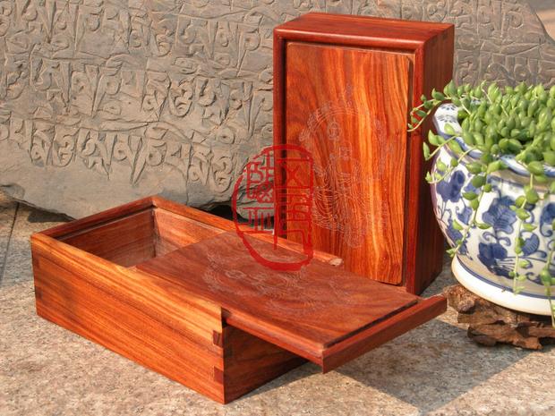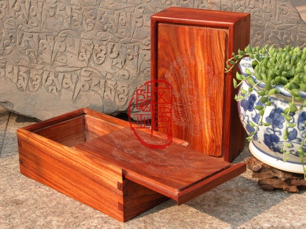 Pure solid wood box Red sandalwood line carved Jizo Bodhisattva statue Handmade wedge tenon structure lacquerless process