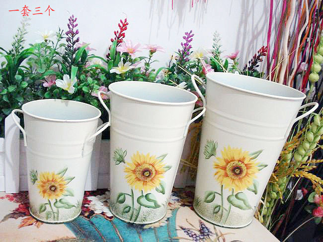 Field Garden Hand Painted sheet Flower Bucket Flower flower Flower Inserts Flower Pot home Decorative Pendulum vase collection Iron Barrel