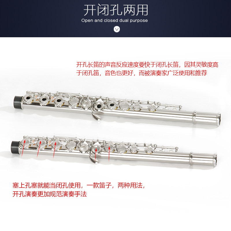 16-hole E-key C- nickel-plated open closed-hole dual-purpose flute students beginner playing professional test instrument flute