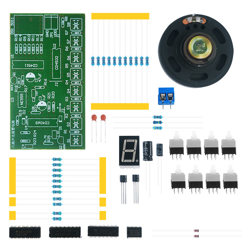 Eight-way sound and light alarm DIY electronic kit teaching training circuit board production experiment welding practice assembly
