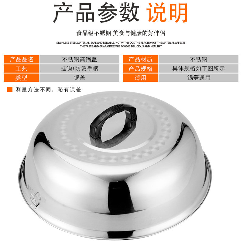 Stainless steel pot cover with round common high-cover household thickening large lid deep pot cover kitchen cooking
