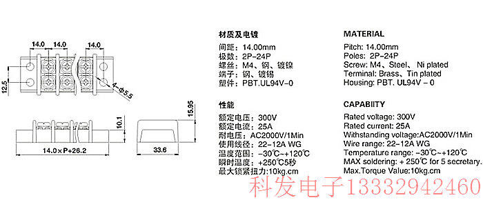 Fence-type wiring terminal KF89-14 0mm with positioning double row without welding needle wiring end column wiring board