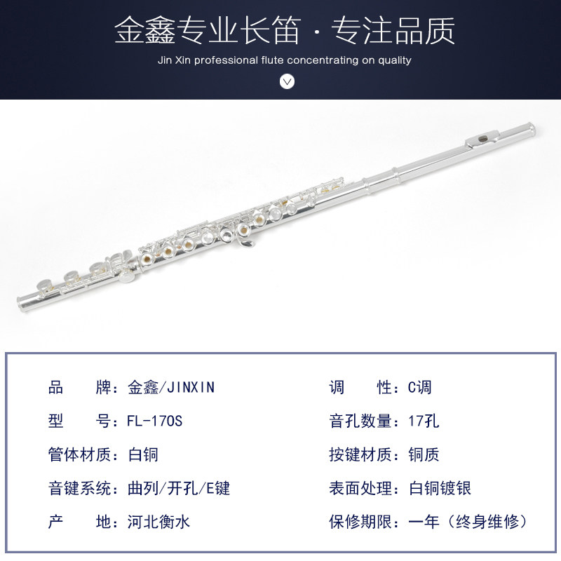17 holes C tone E key silver plated long flute drilling closed hole Dual-use beginner level Professional Appraisal Exam Instrumental Flute